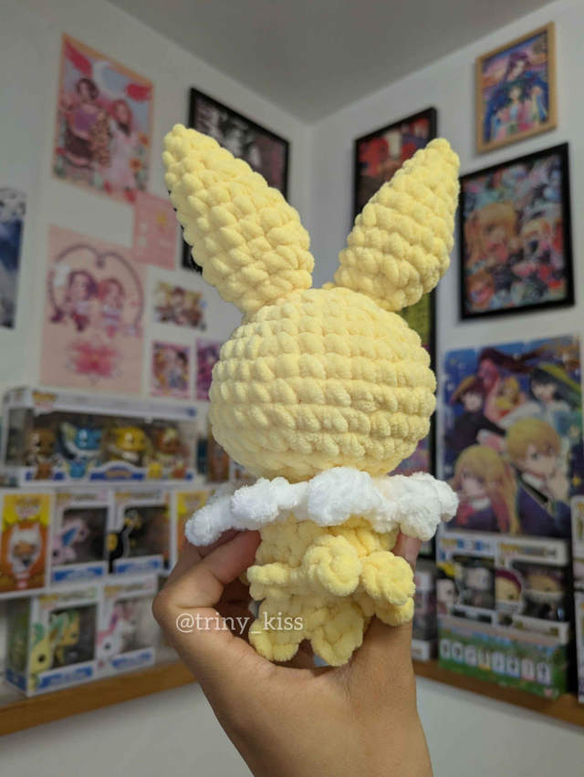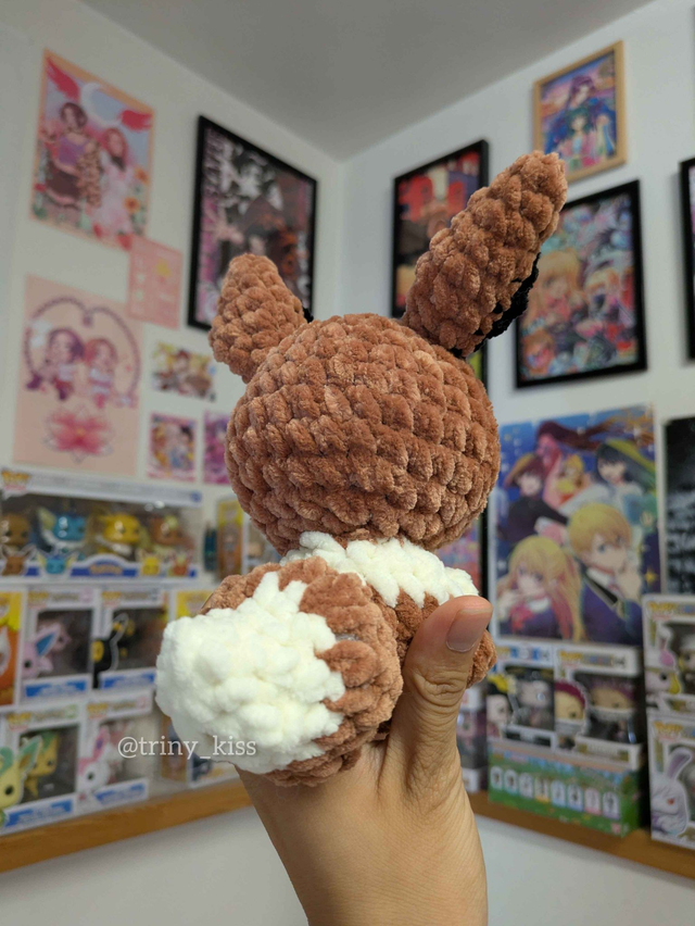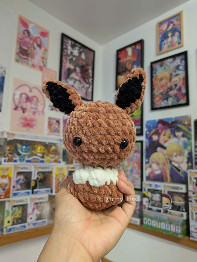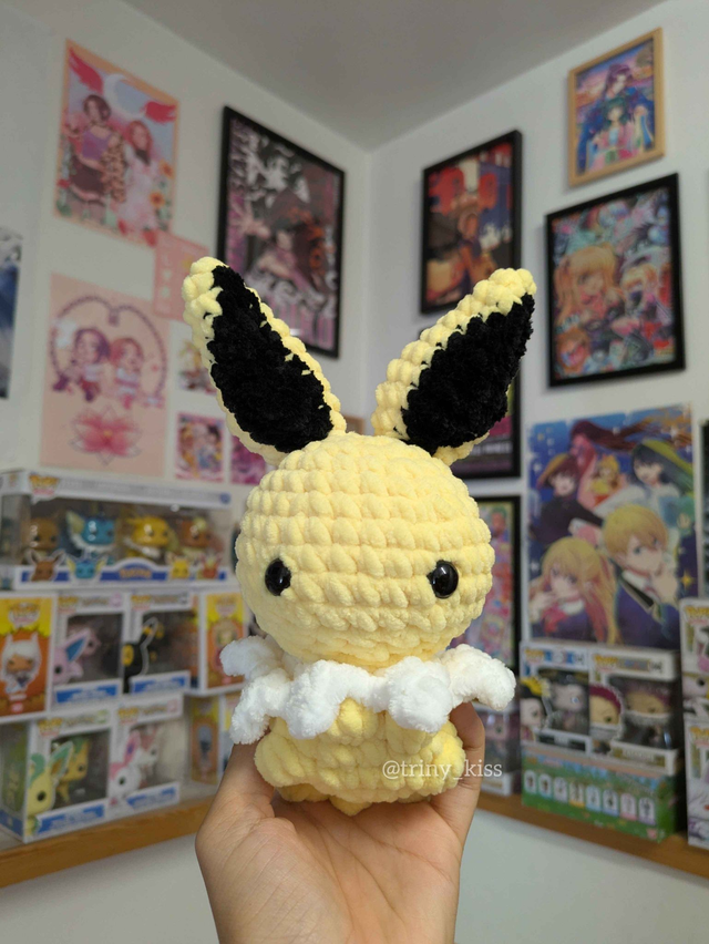 Bonjour ! Voici des amigurumi d'Evoli, Voltali et Mentali en crochet fait main.