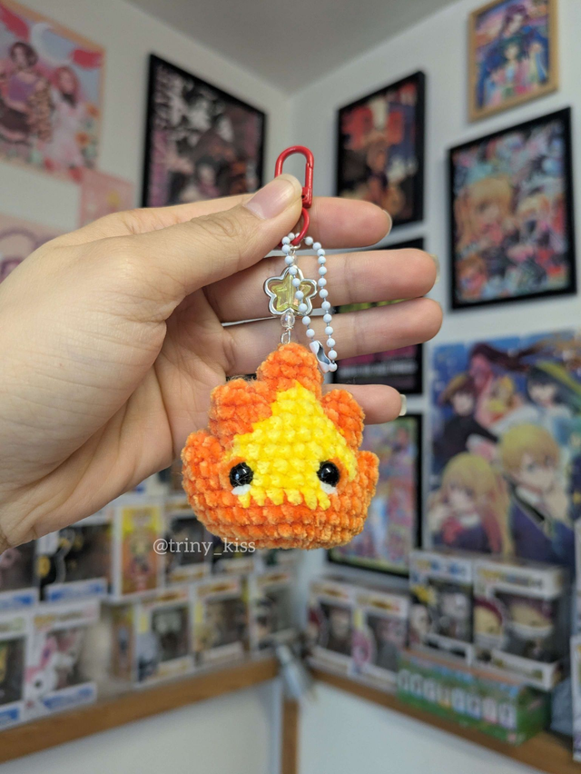 Bonjour ! Voici des amigurumi - porte-clés de Calcifer en crochet fait main.