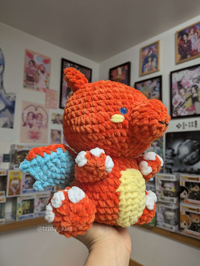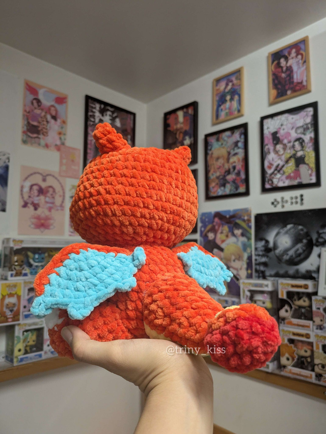 Bonjour ! Voici un amigurumi de Dracaufeu en crochet fait main.